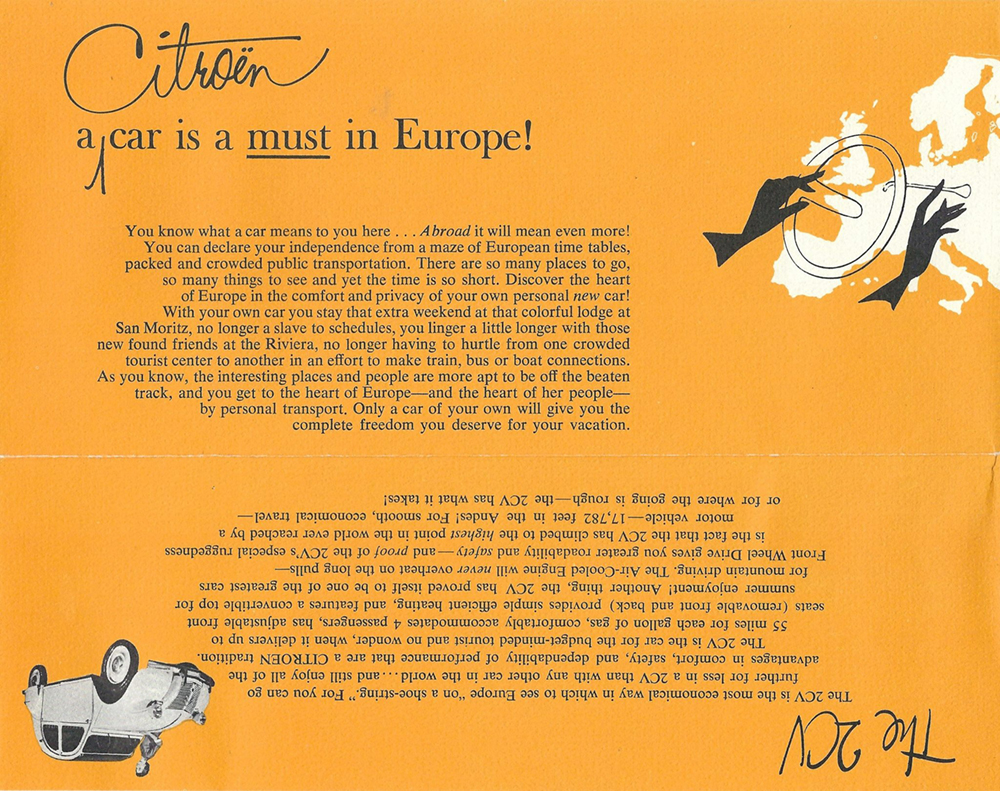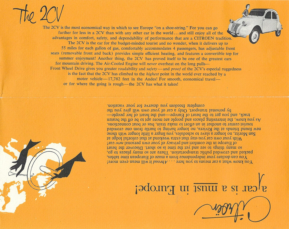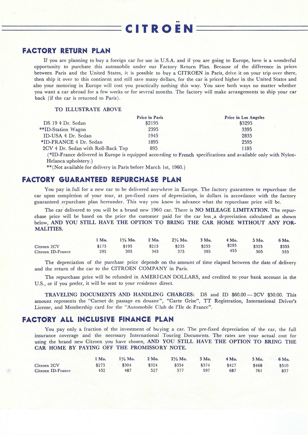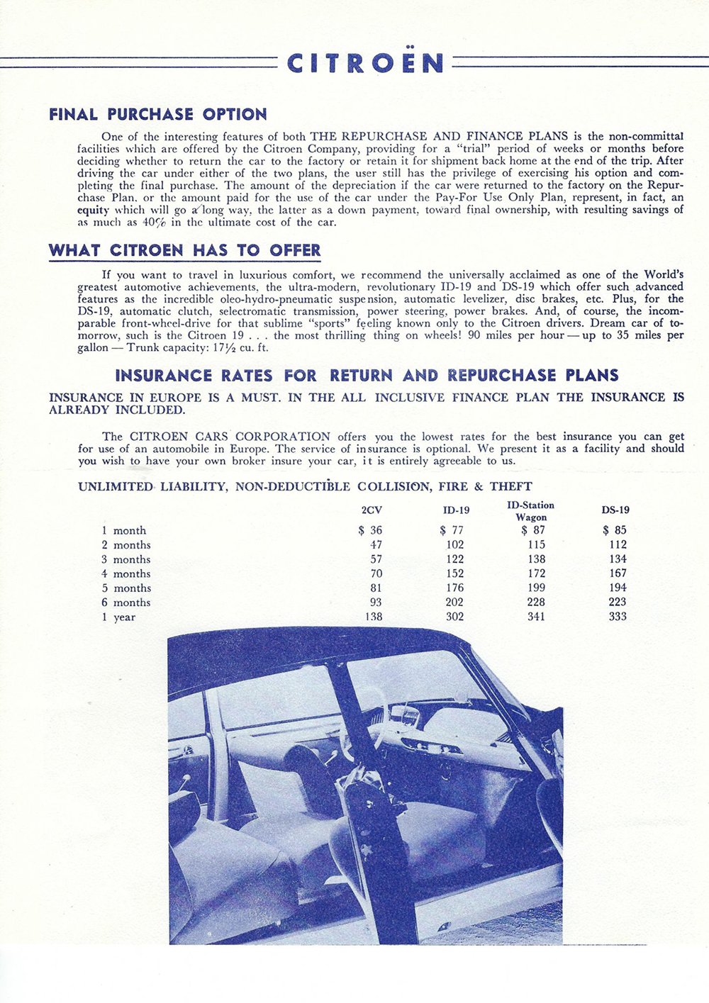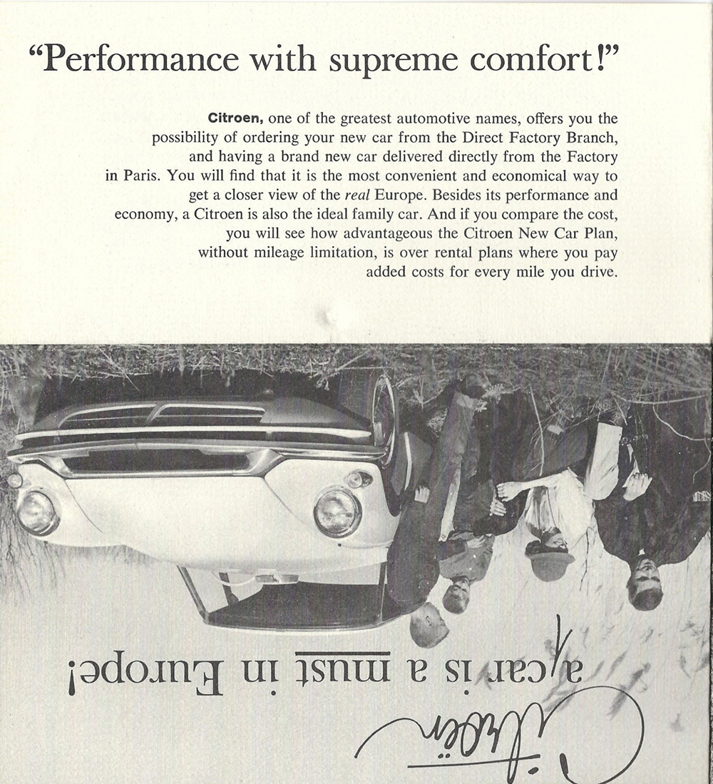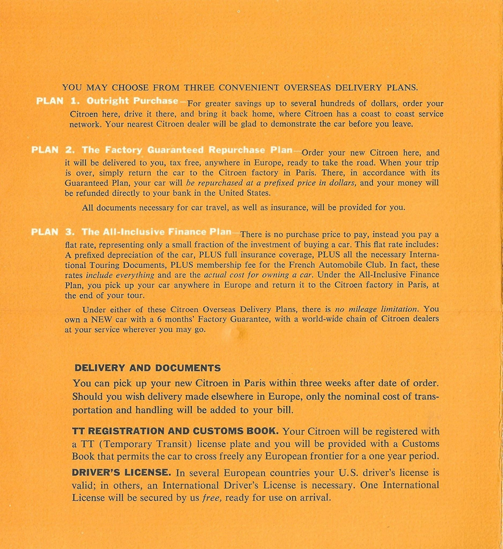 In 1960, Mr Eugene Swantz contacted Citroën Cars Corporation with a view to buying a car (probably a Wagon). This is what he received. Please note, some of these documents are to be found elsewhere in this site.