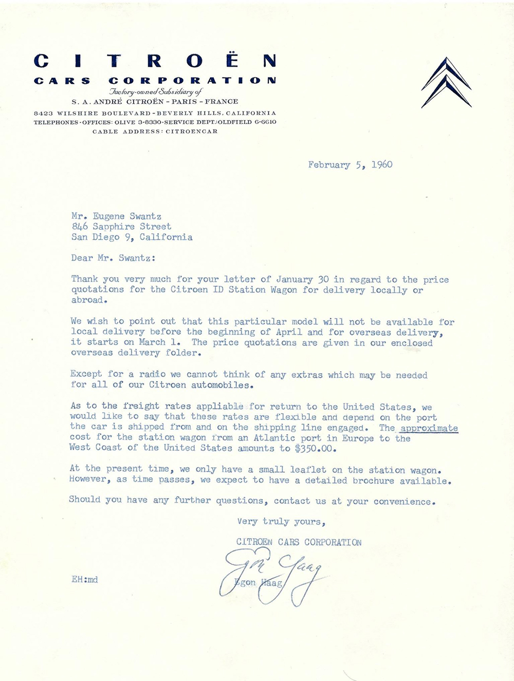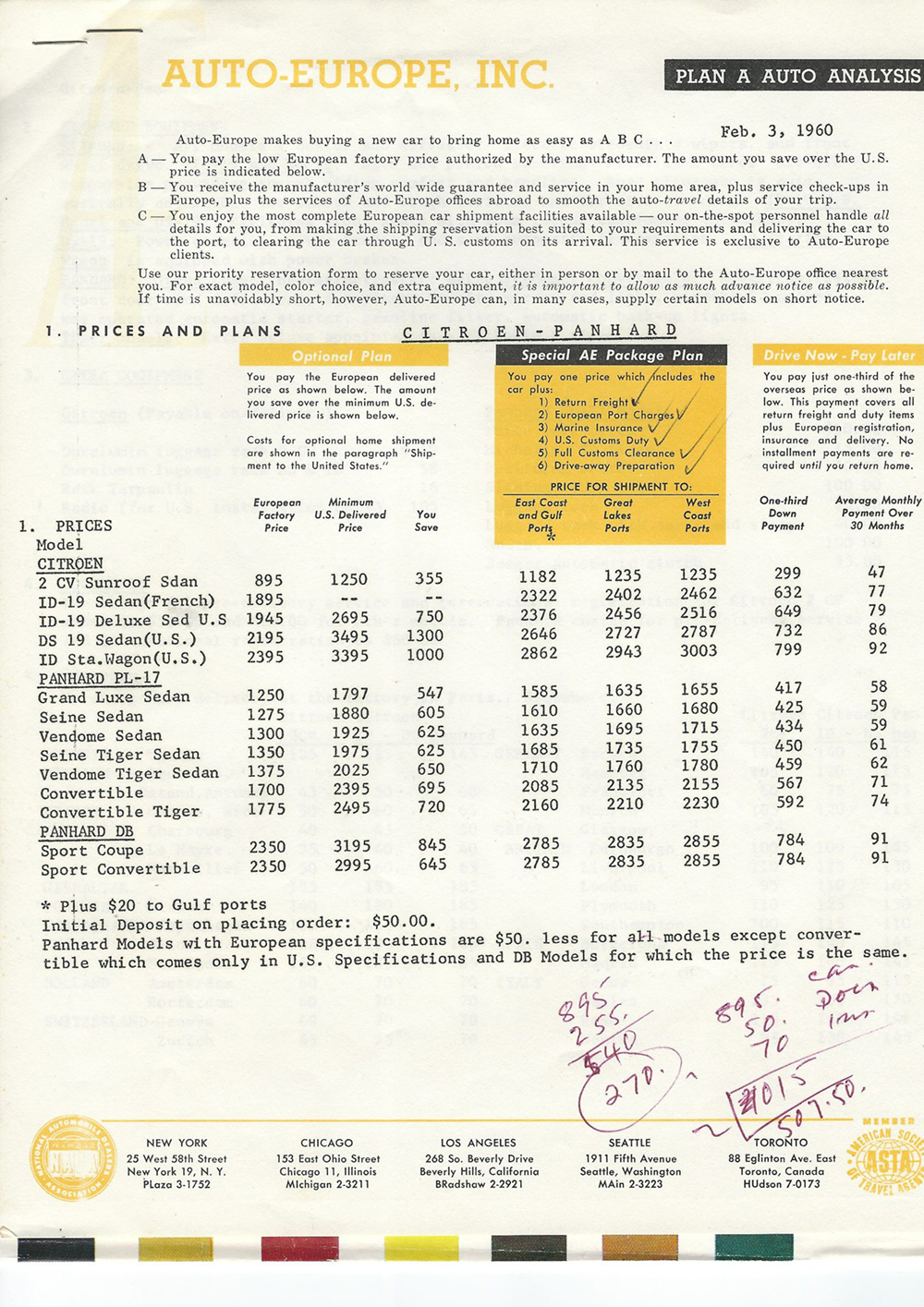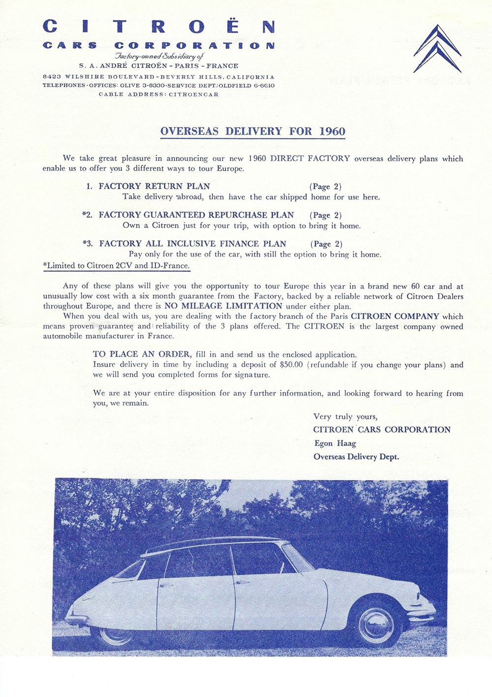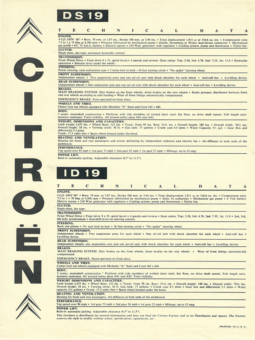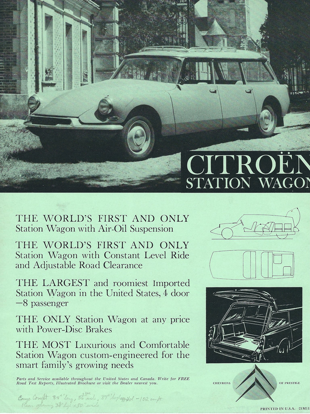 In 1960, Mr Eugene Swantz contacted Citroën Cars Corporation with a view to buying a car (probably a Wagon). This is what he received. Please note, some of these documents are to be found elsewhere in this site.