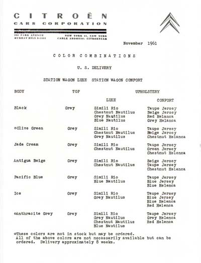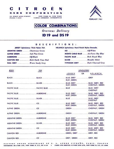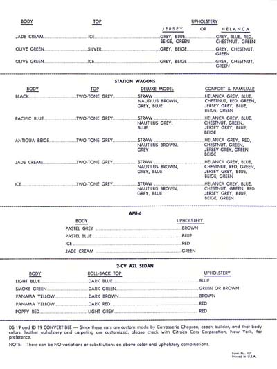Colours for DS19, ID19 and ID19 Station Wagon