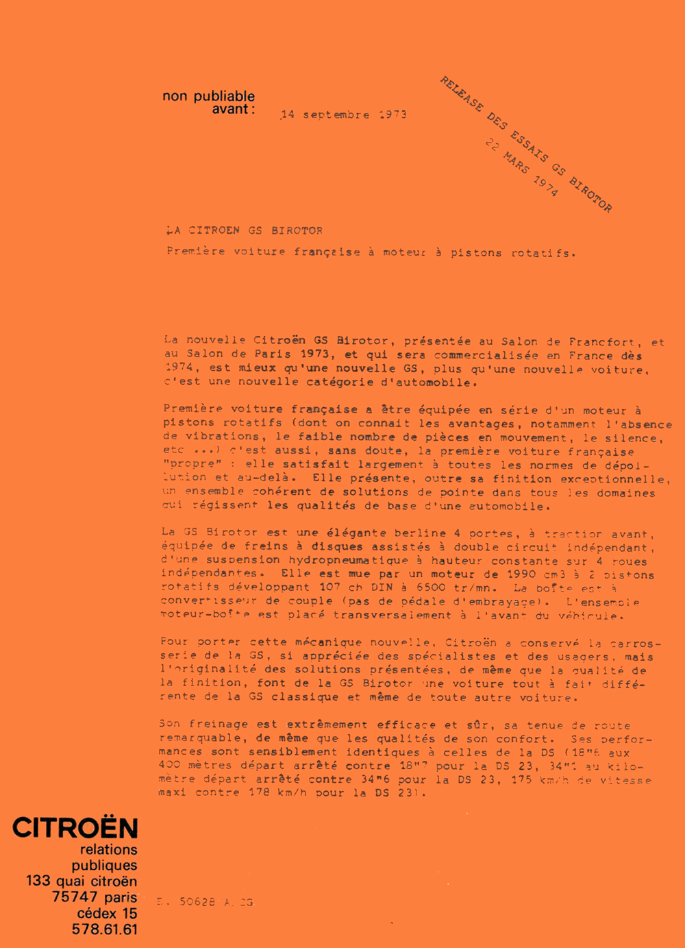 1973 press release for the