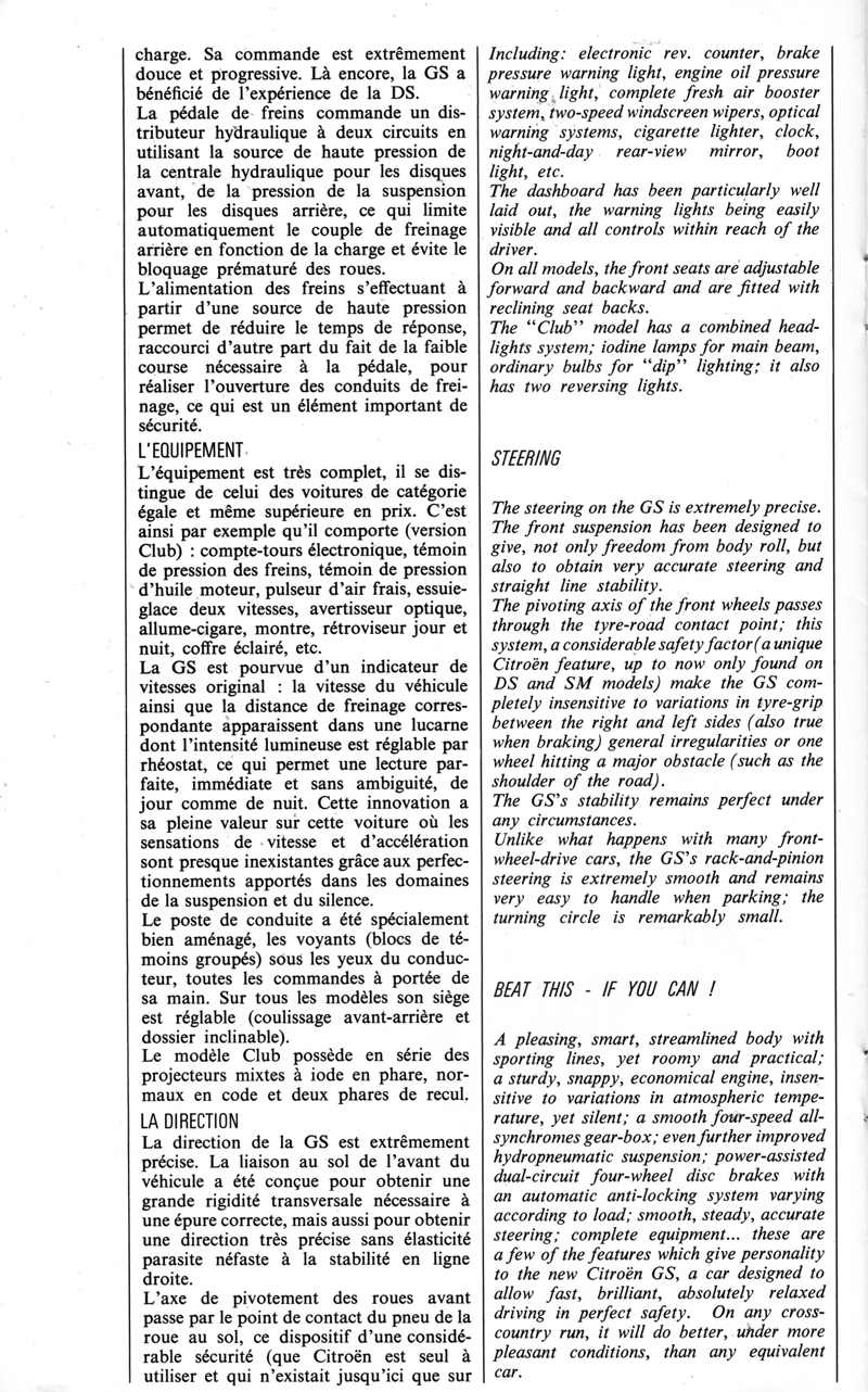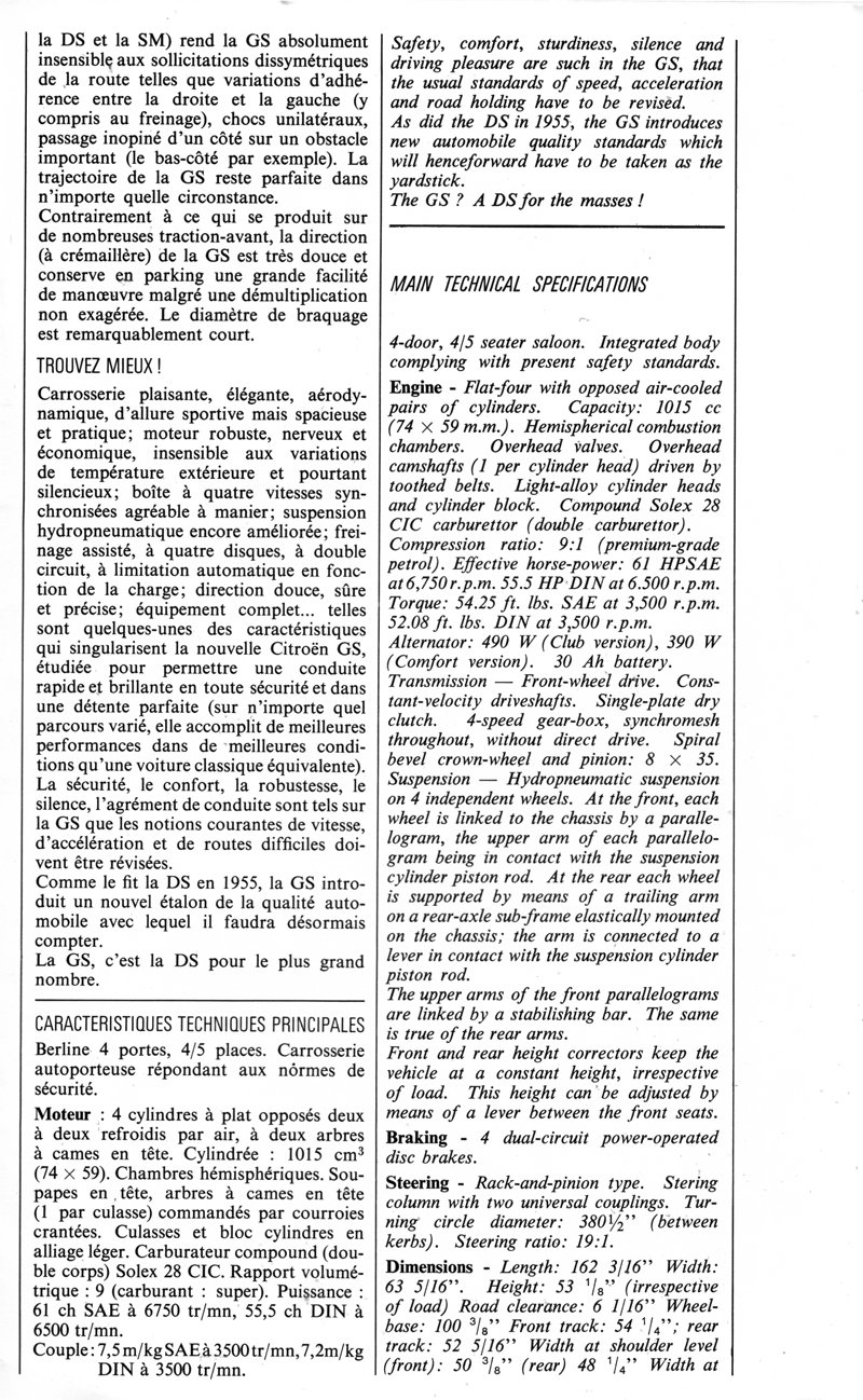 | 1972 brochure for Citroën GS 1220 Transmission Semi-Automatique |
