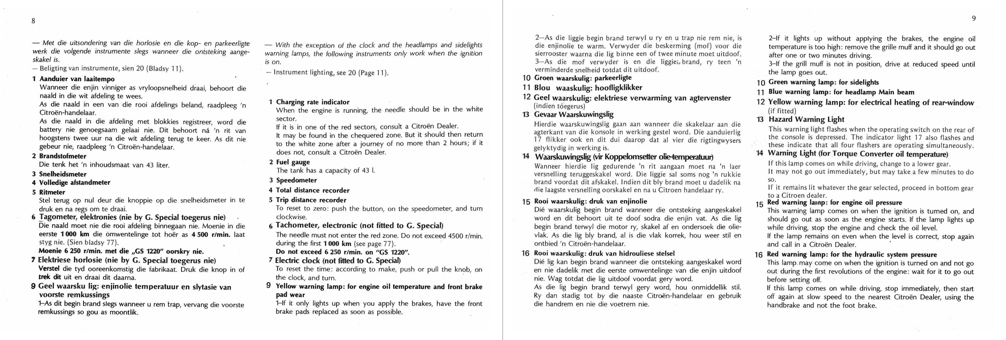 1977 South African Citroën GS owner's handbook/