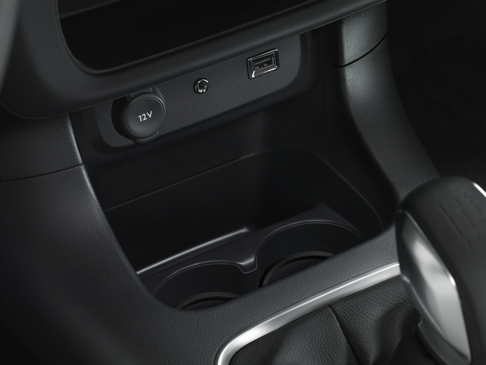 an ingenious central cubby, designed to keep