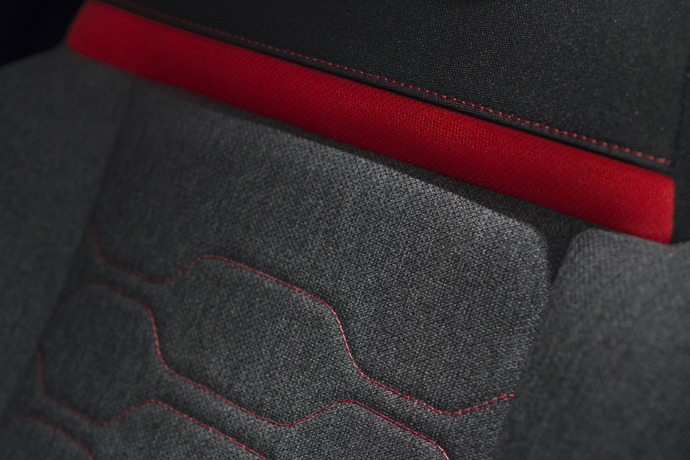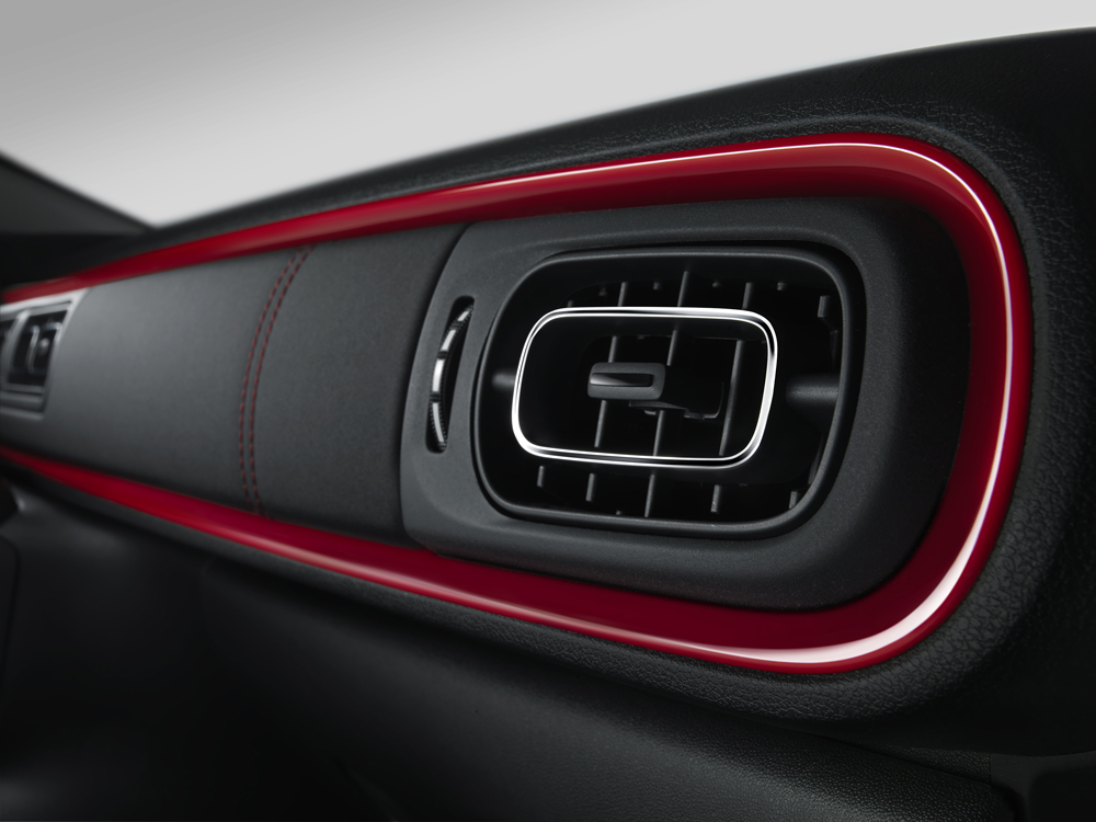 upholstery and uncluttered horizontal dashboard.