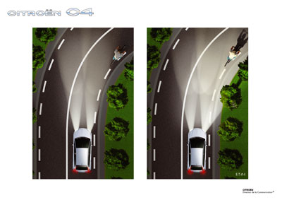 the car takes a corner, the beam lights up the inside of the curve. The
