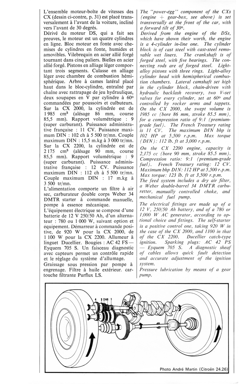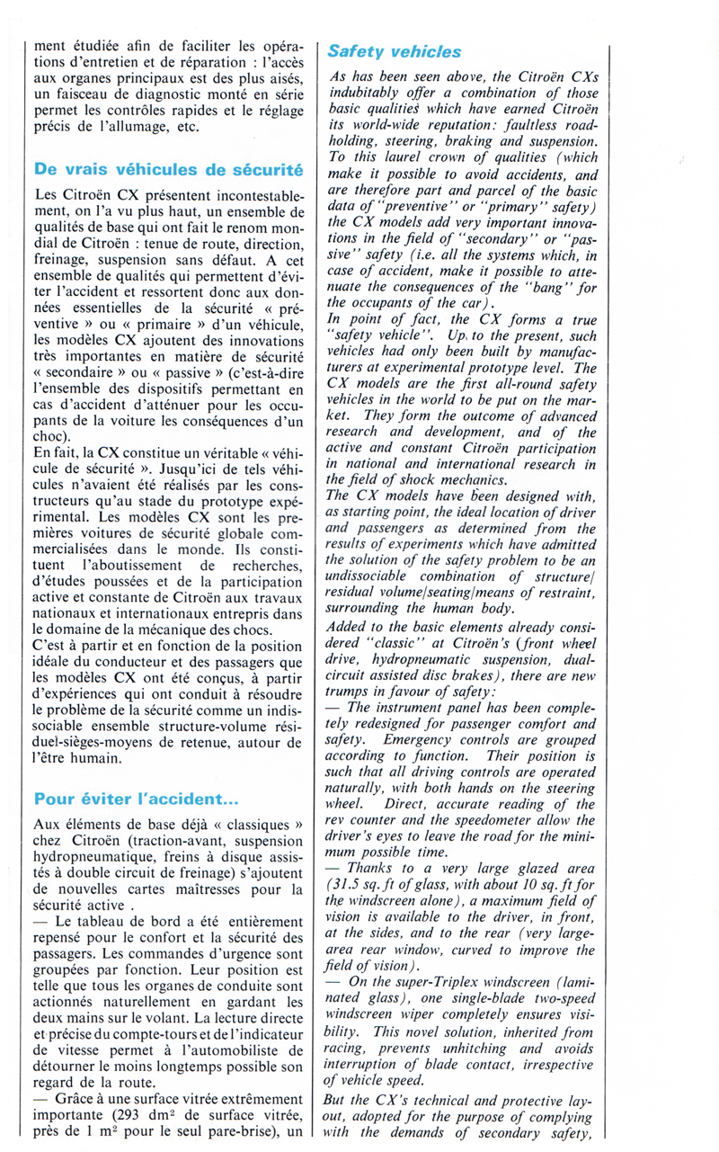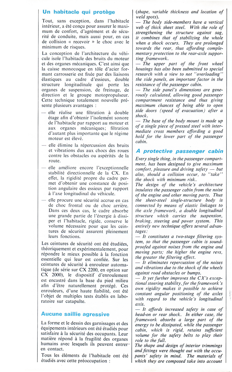 1974 description of the new CX from le Double Chevron 37