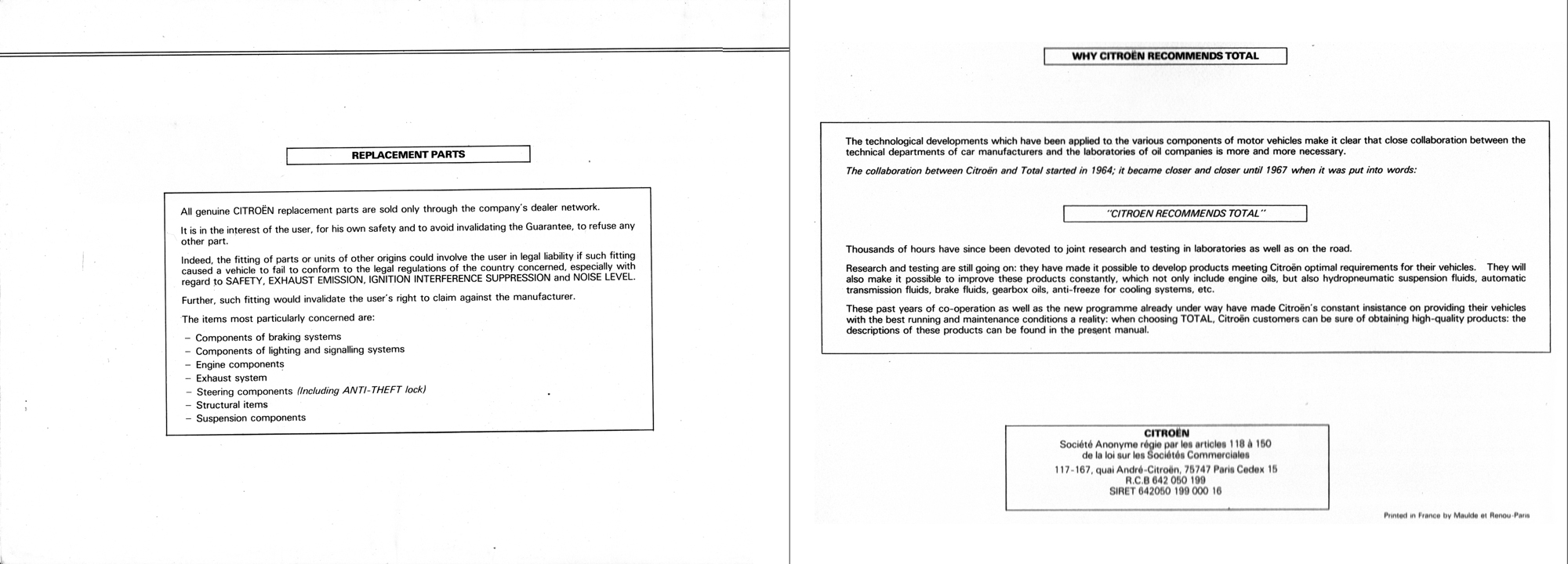 1979 English language Citroën CX Reflex Estate Owner's Manual