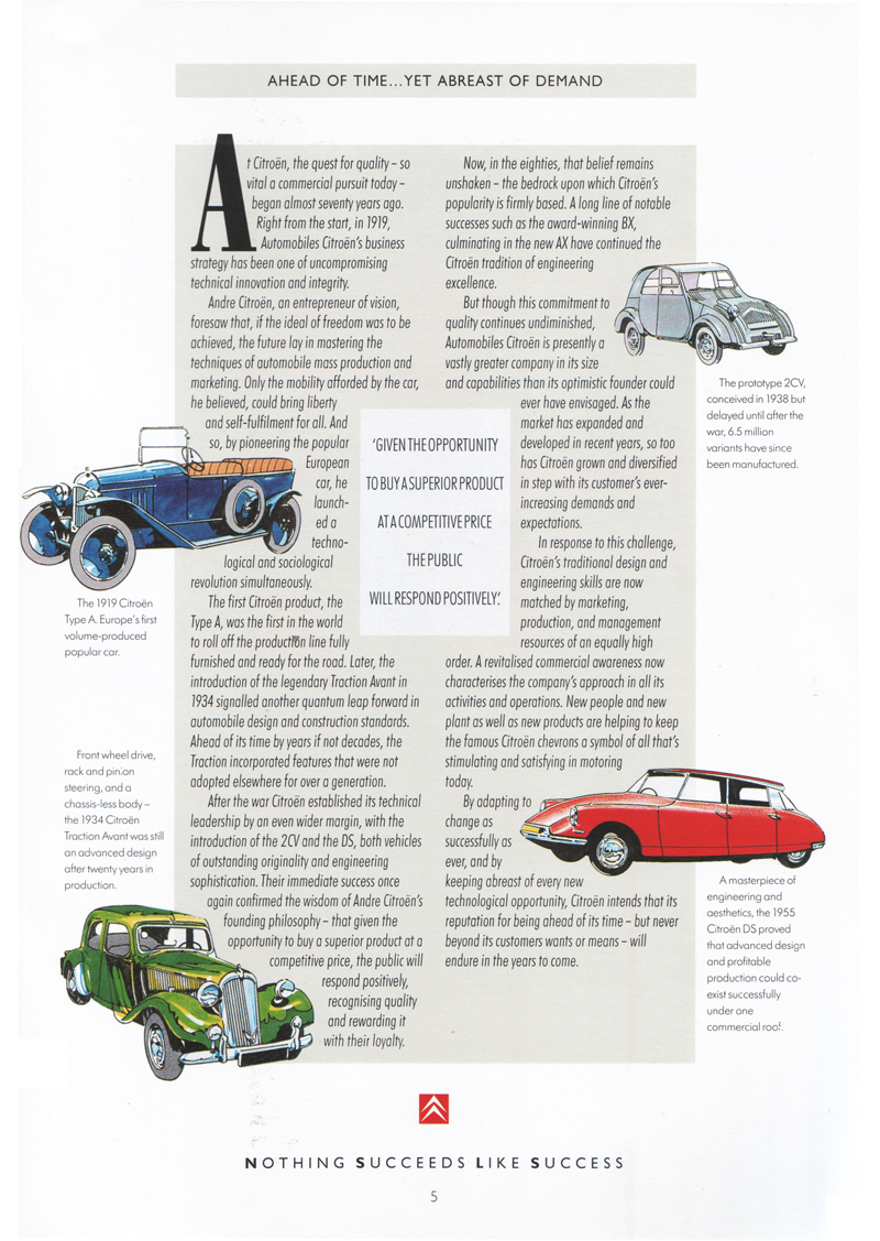 1988 Citroën UK 'Nothing Succeeds Like Success' brochure