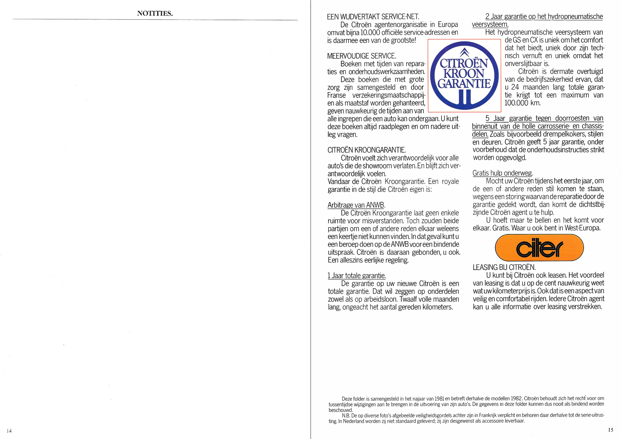 1981 Dutch CX 2 Liter Berlines Brochure