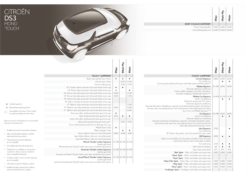 2010 Citroën DS3 Touch British brochure