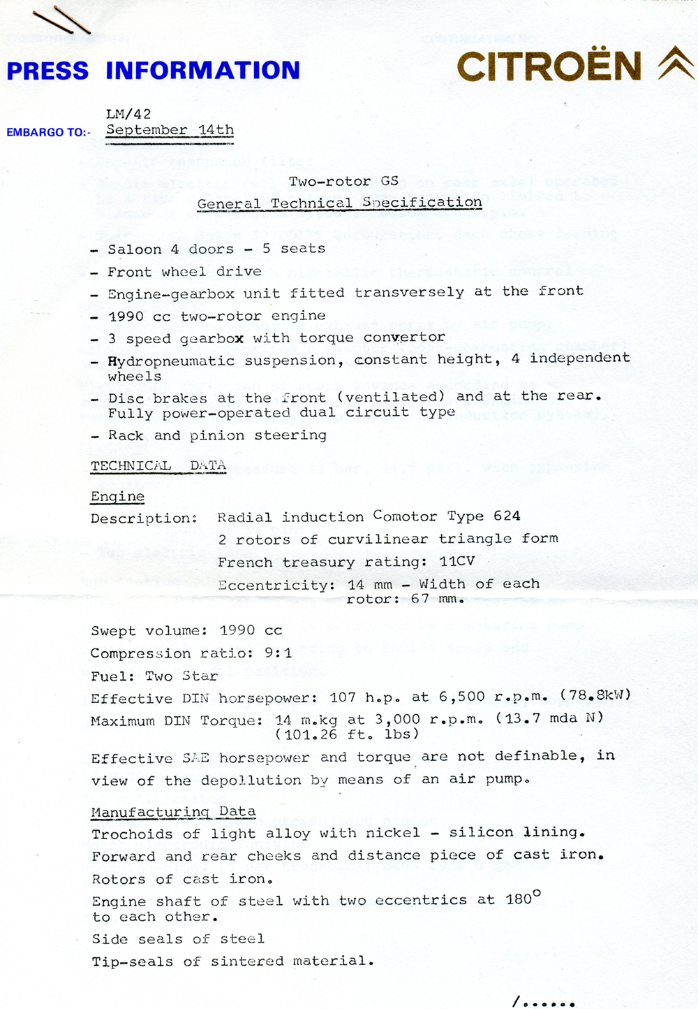 1974 Citroën GS UK brochure |