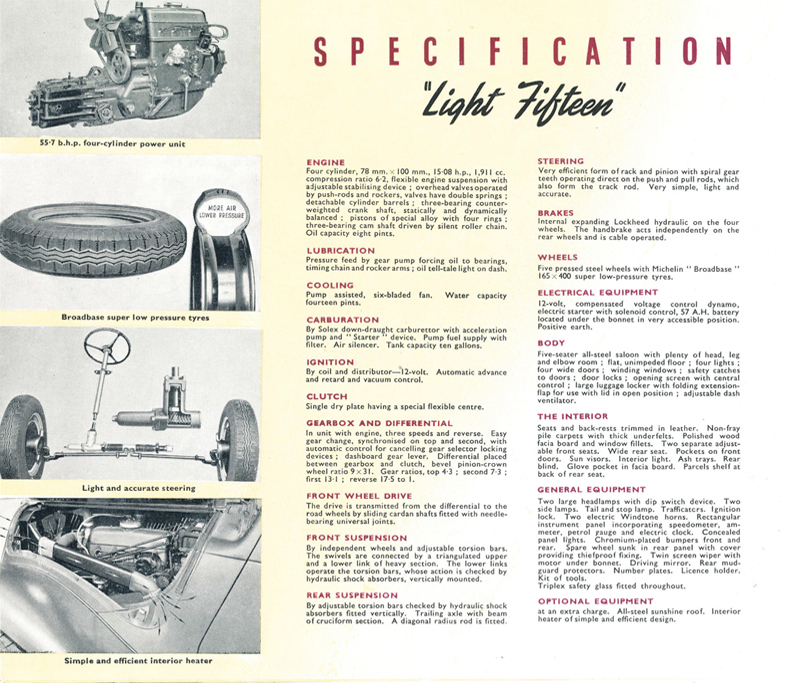 The Slough-built Light Fifteen was the 11CV Traction Avant and the Six Cylinder was the 15CV. I am not sure of the date of this brochure but guess it was