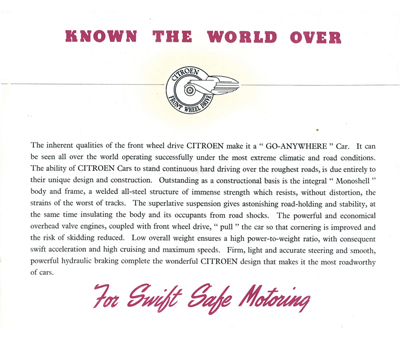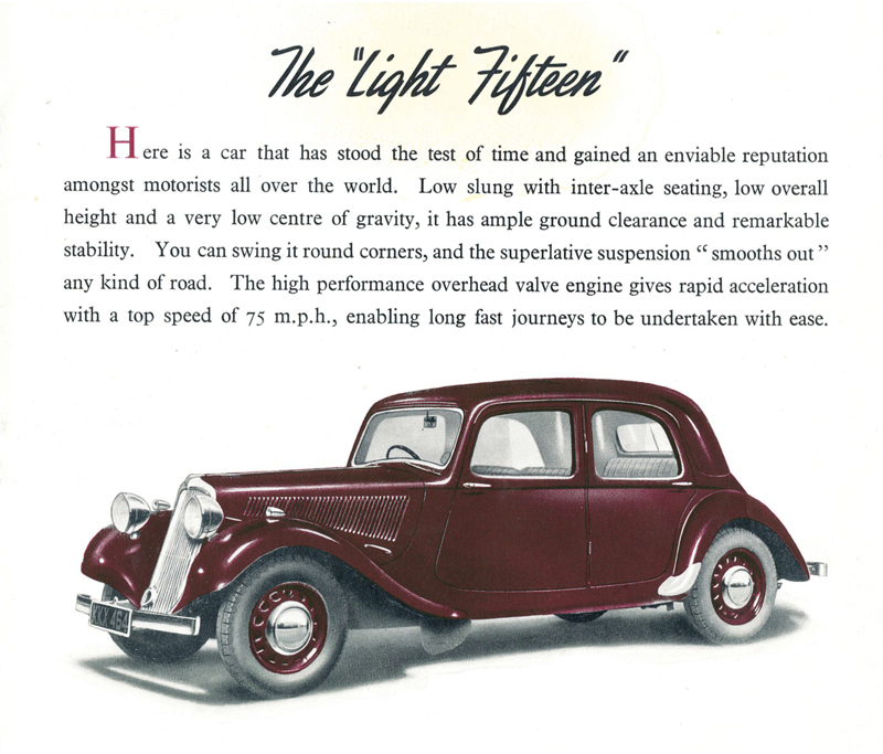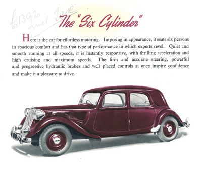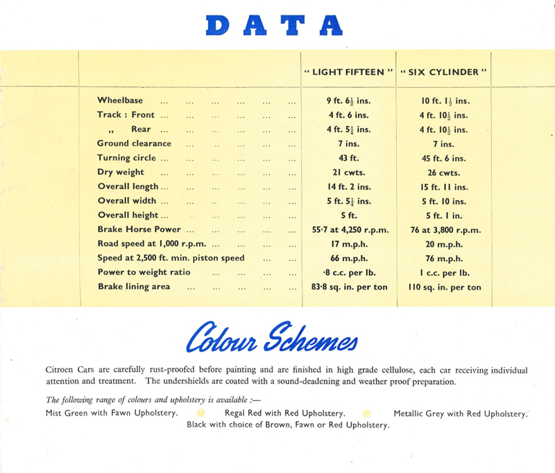 The Slough-built Light Fifteen was the 11CV Traction Avant and the Six Cylinder was the 15CV. I am not sure of the date of this brochure but guess it was