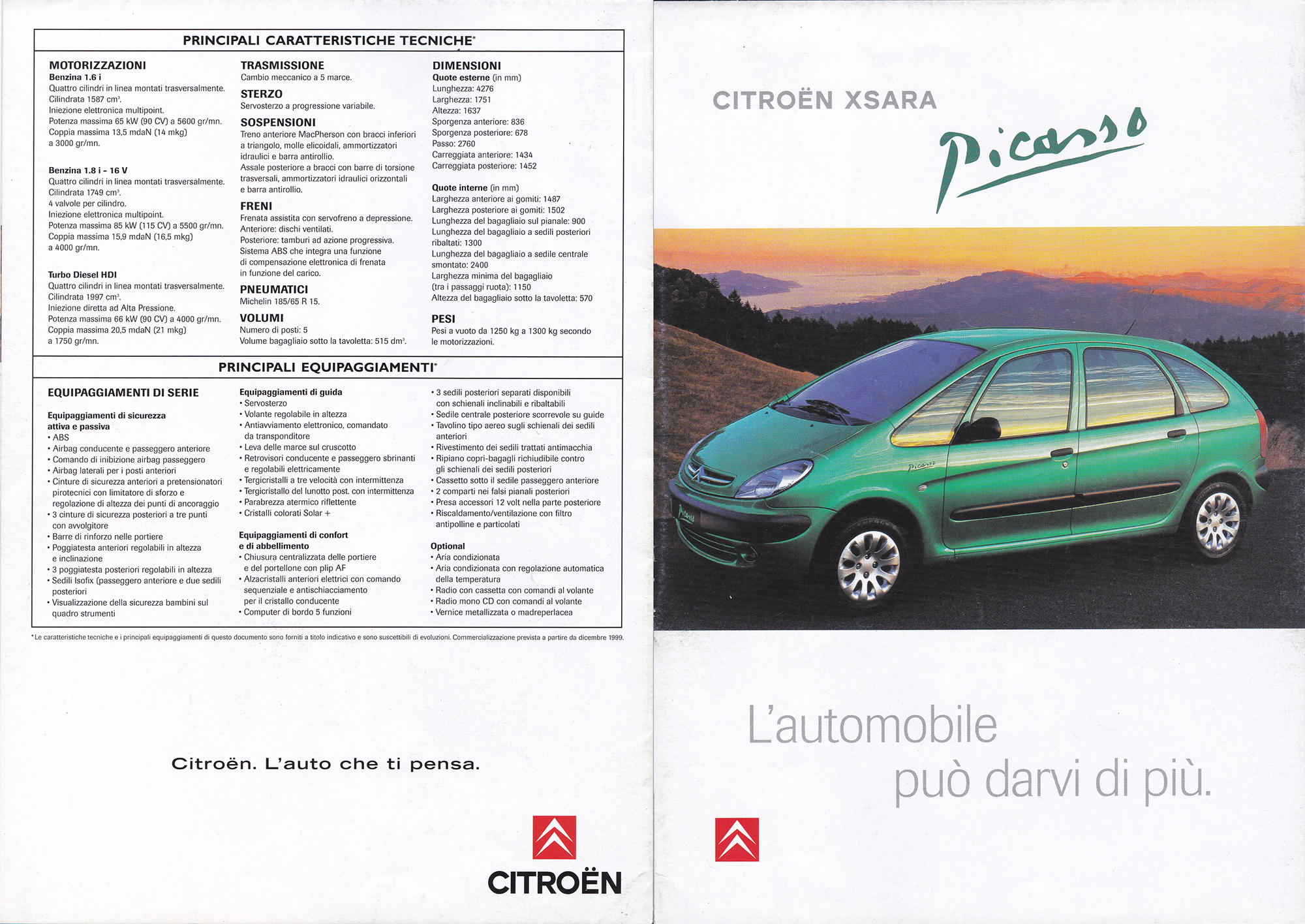 1999 Italian Citroën Xsara Picasso leaflet