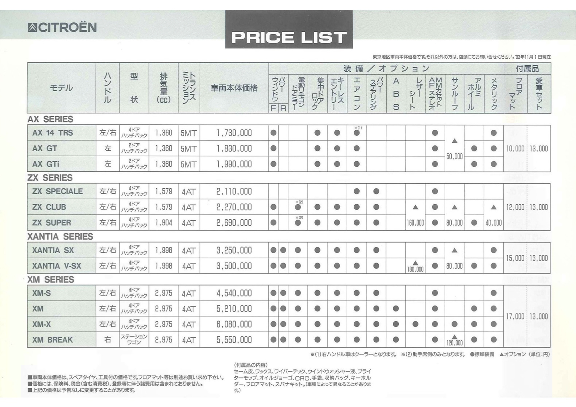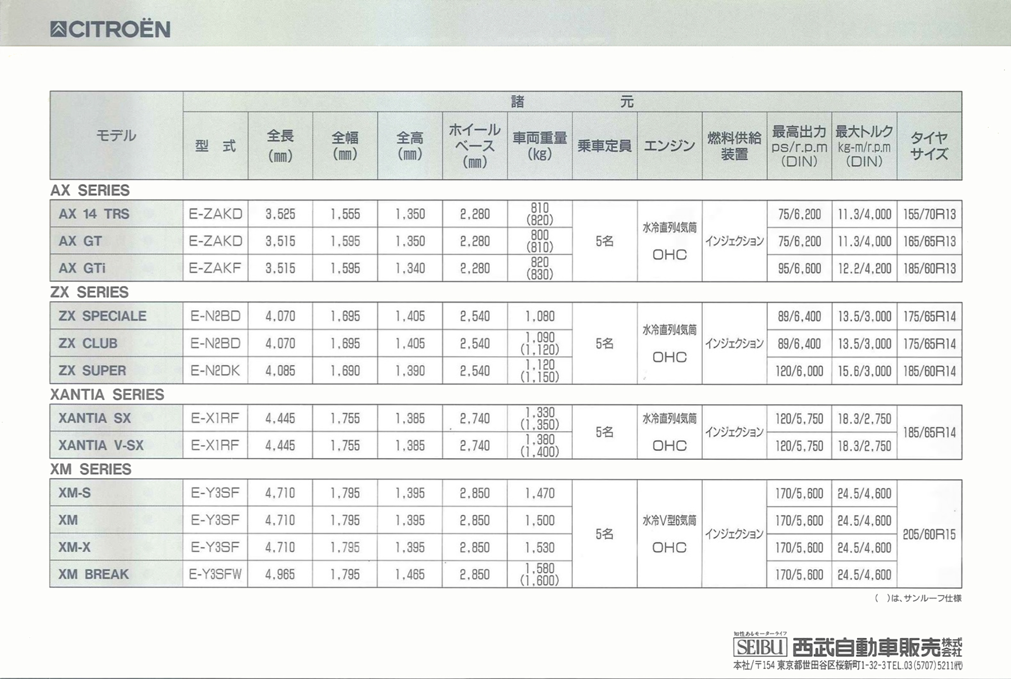 1993 Citroën Seibu Xantia Japanese brochure