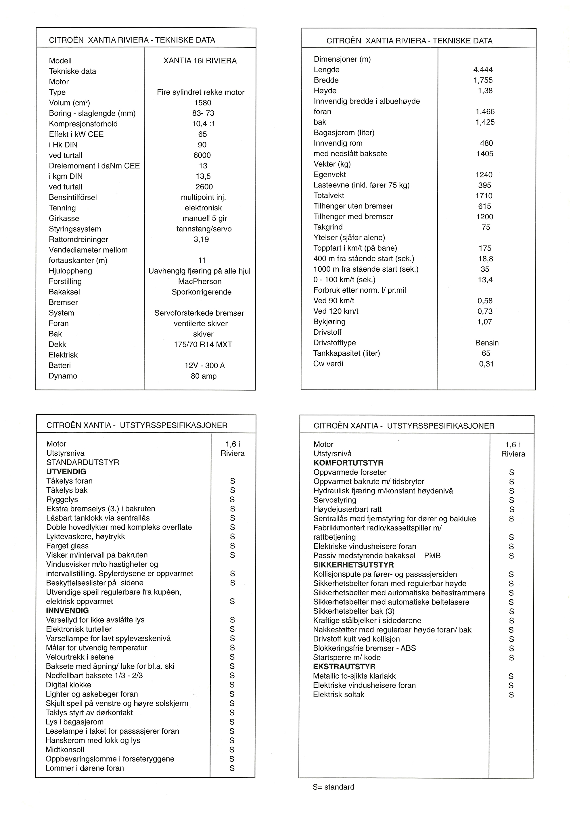1997 Norwegian Citroën Xantia Riviera leaflet