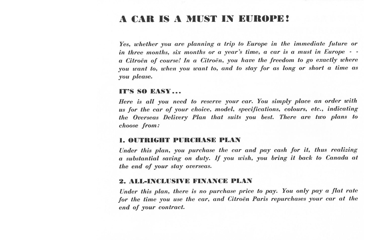 'holidays/europe/citroën' brochure