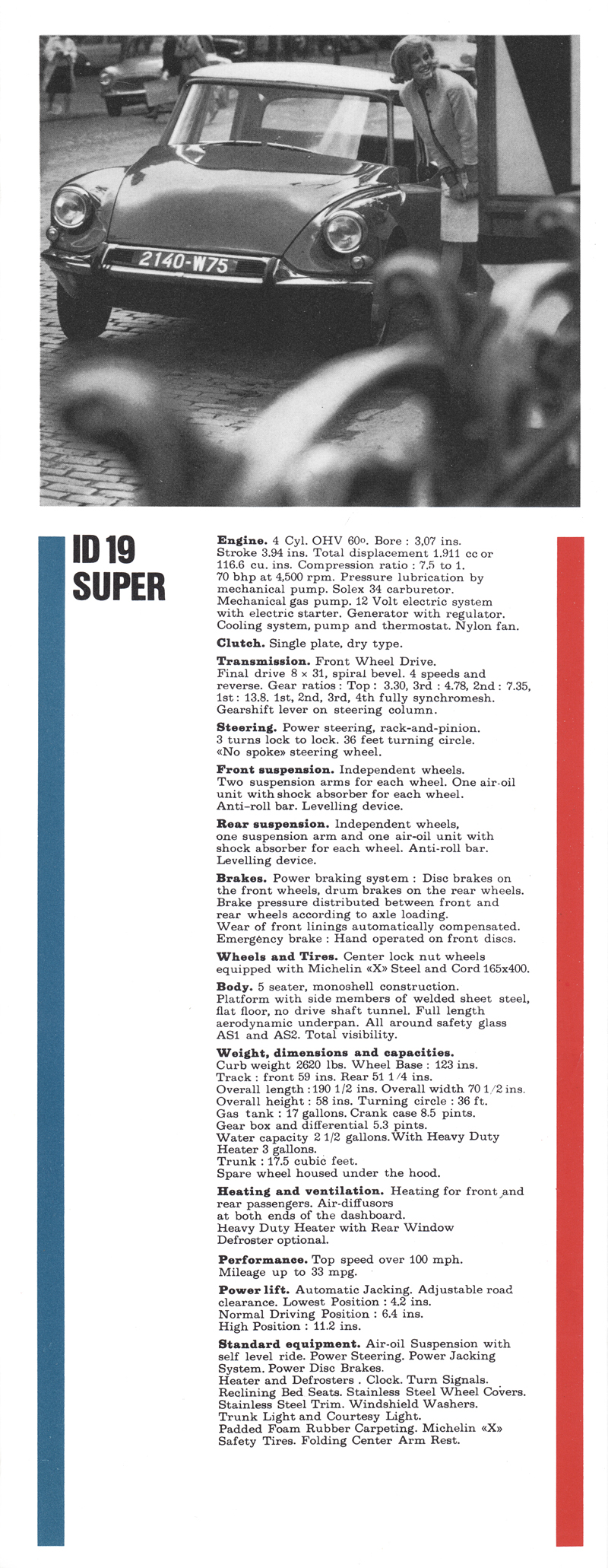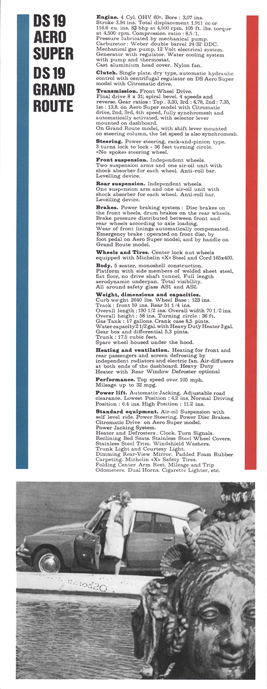 Citroën DS19 Aero Super, DS19 Grand Route, ID19 Super and Station Wagon - 1963 brochure