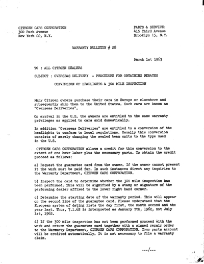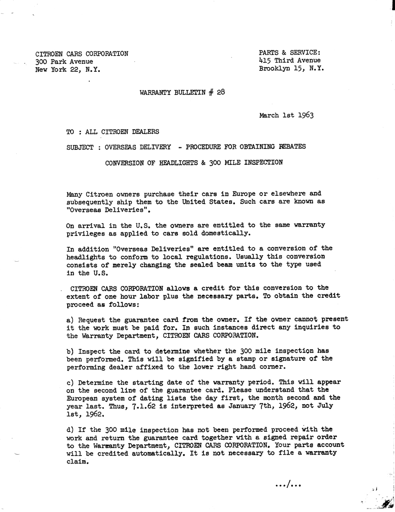 1963 warranty bulletin for dealers