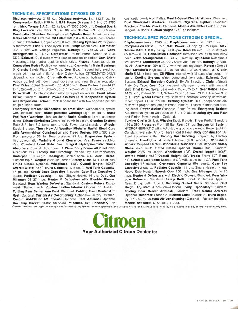 Citroën D Series - 1970 brochure