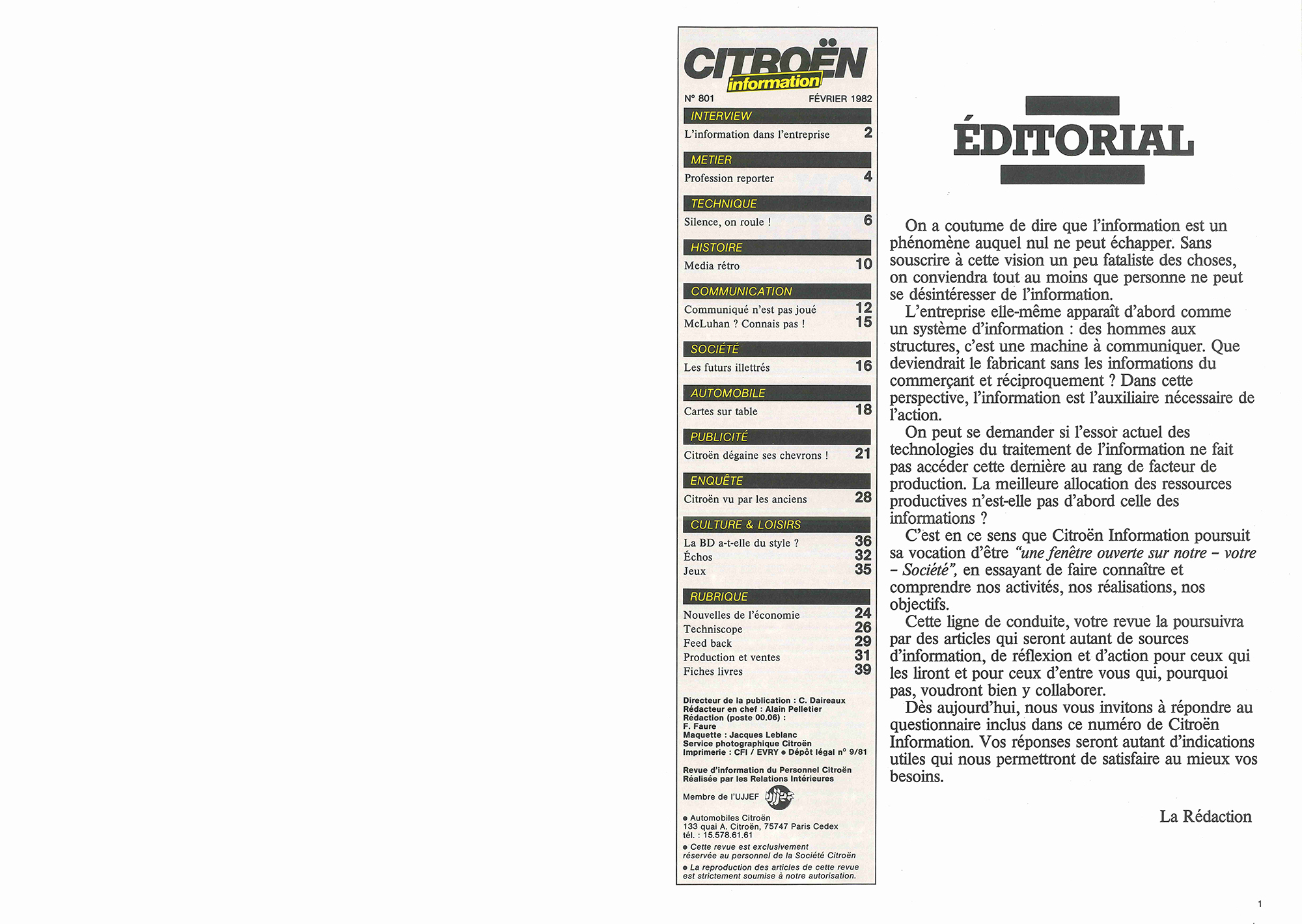 Citroën Information was an internal publication issued to 'personnel Citroën' in France.