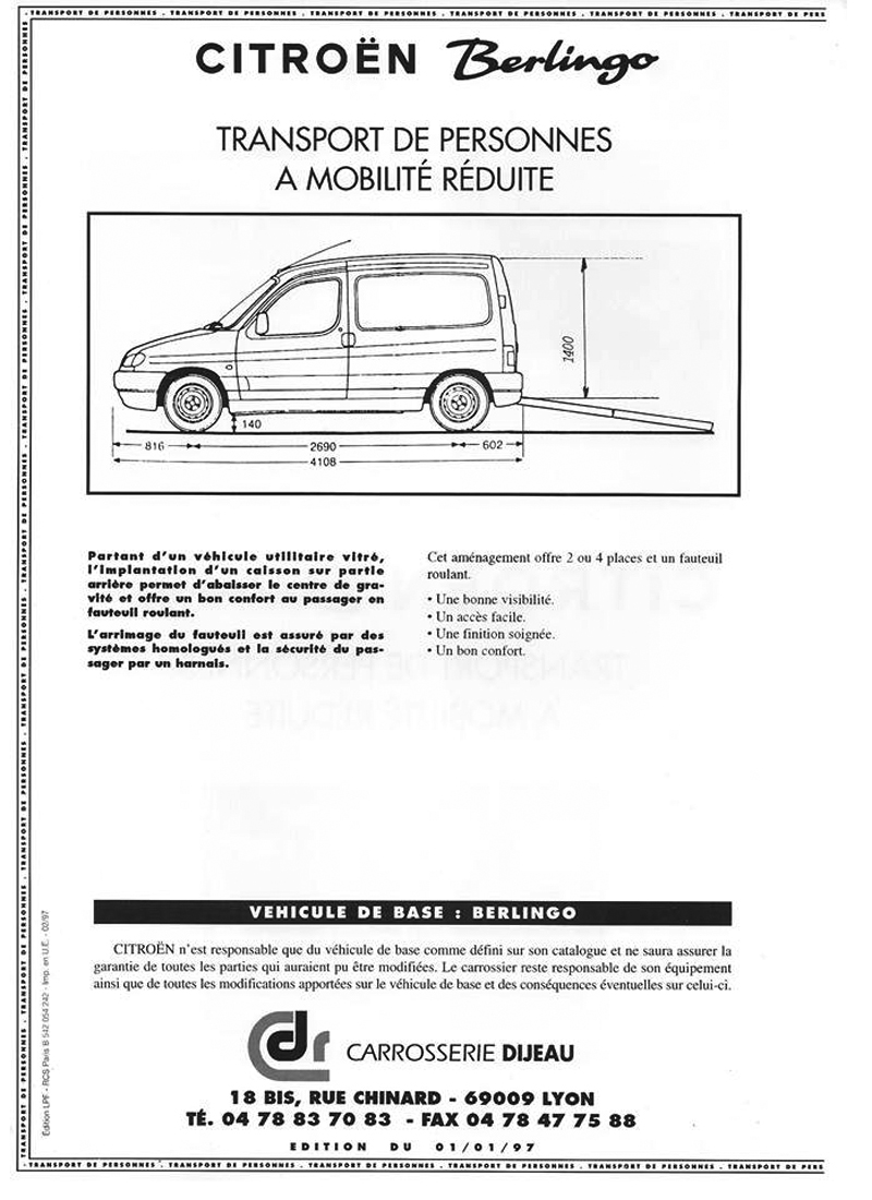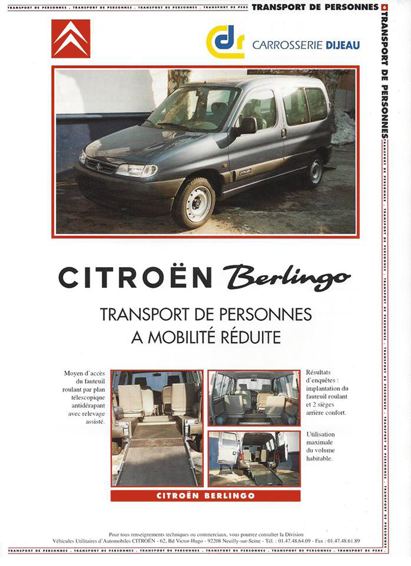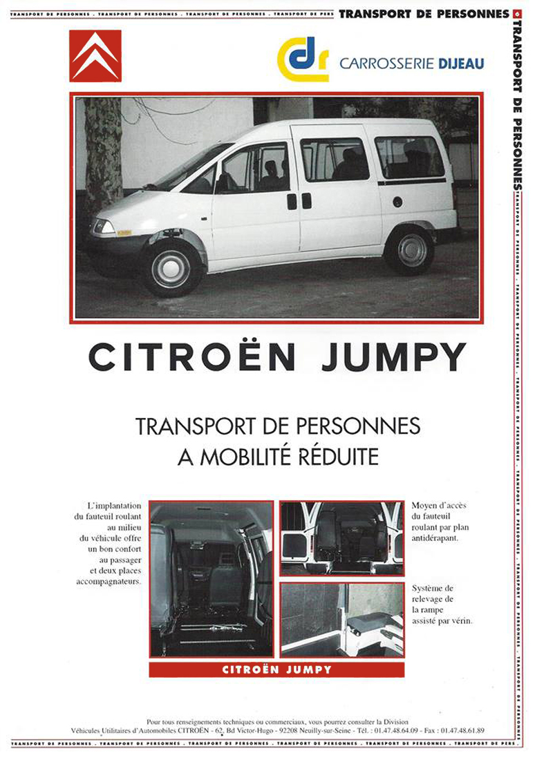 Many companies assemble specialist vehicles on Citroën platforms. Dijeau manufactured transport for people with reduced mobility in the mid nineties.