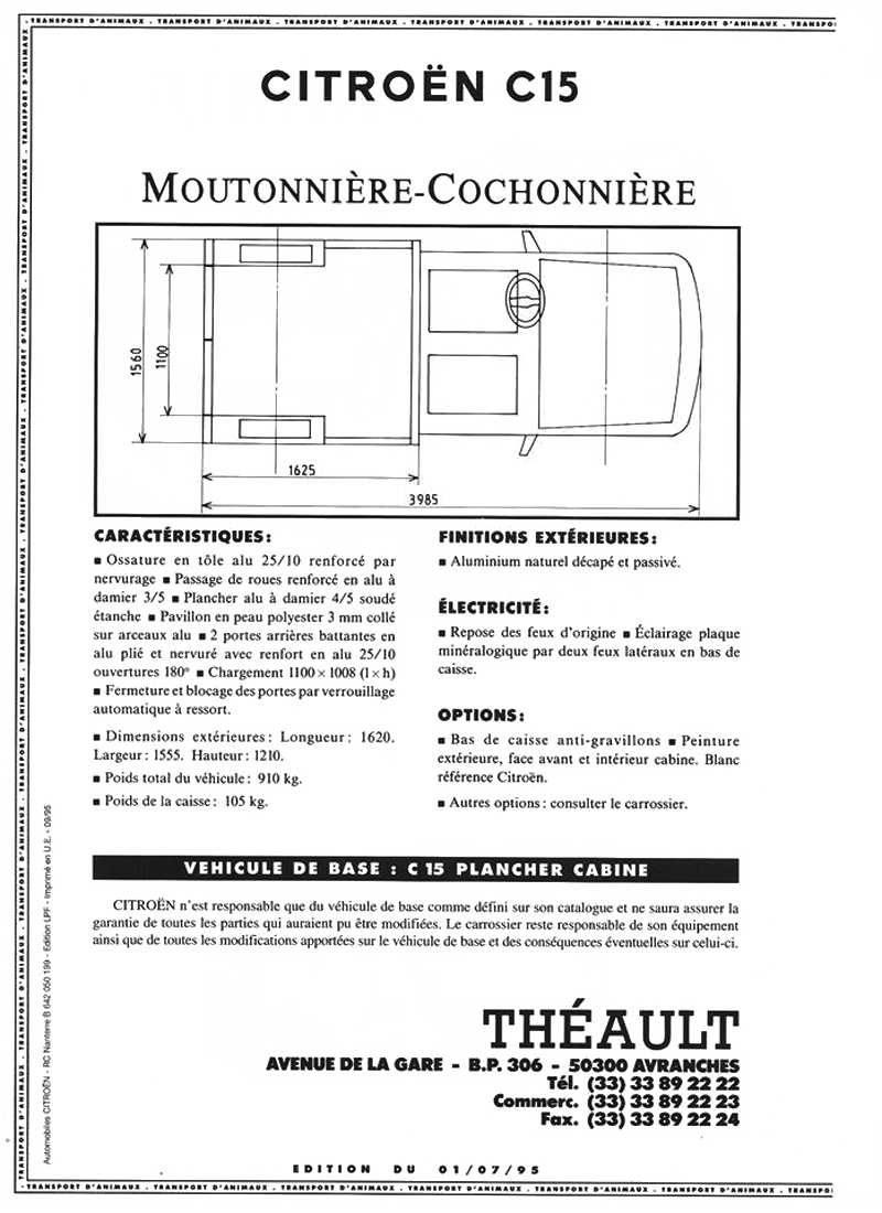 Many companies assemble specialist vehicles on Citroën platforms. Théault manufactured animal transport vehicles in the mid nineties.