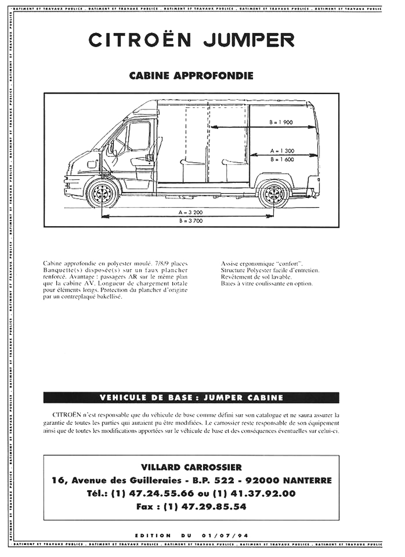 Many companies assemble specialist vehicles on Citroën platforms. Villard manufactured mini buses and mobile workshops in the mid nineties.